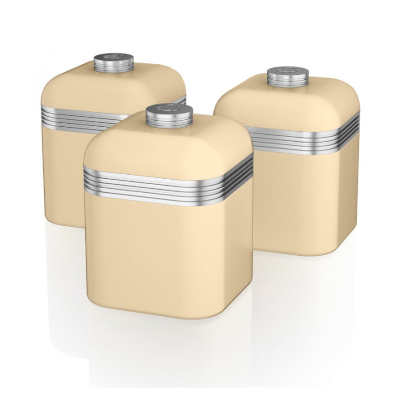 The Swan Retro set of 3 storage canisters are a stylish solution to storing your everyday essentials. Each canister features a durable iron body and a large 1 litre capacity to store tea, coffee, sugar or other loose ingredients for easy access on your kitchen worktop, complete with airtight lids to lock in the freshness. The large chrome accented lids provide a comfortable grip, making them easy to open and access the contents. These kitchen canisters combine practicality with a vintage design, offering a 1950s and 1960s inspired colour scheme to inject new life into your kitchen. All canisters have non-slip feet for added stability and to protect your worktop from scratches. The kitchen storage canisters form part of the Swan Retro breakfast and storage collection. They are easy to clean, requiring just a simple wipe down with a damp cloth.