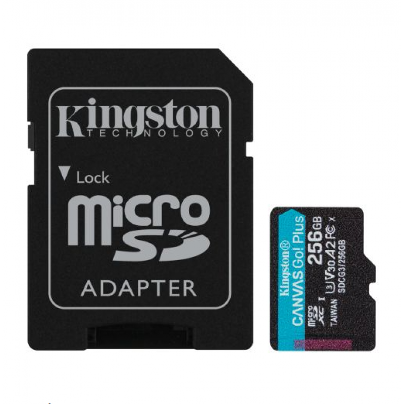 Kingston 256GB Canvas Go! Plus Micro SDXC Card with SD Adapter, UHS-I Class 10, U3, A2 App Performance, 170MB/s