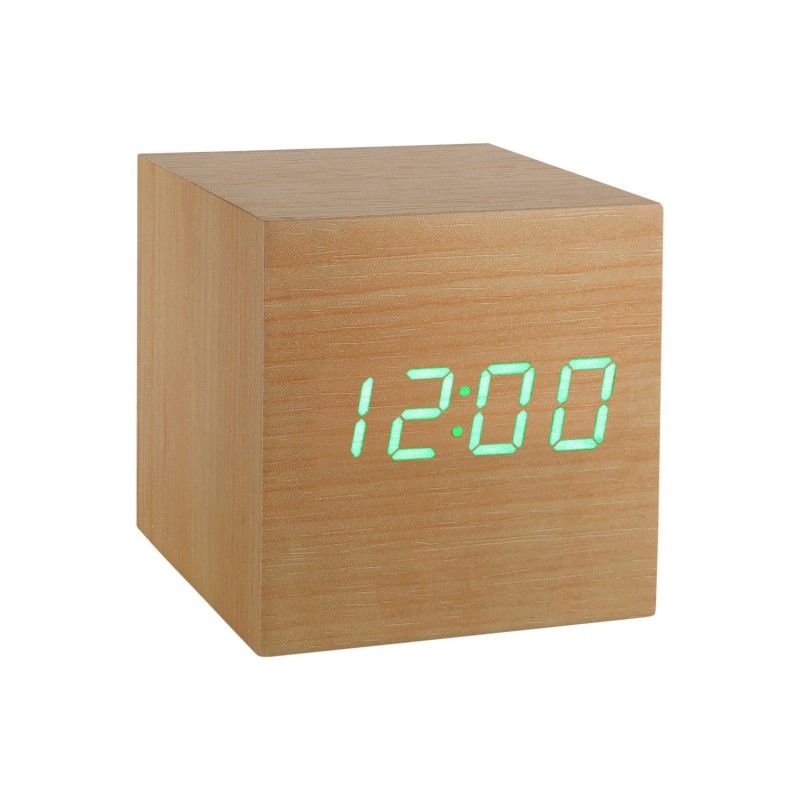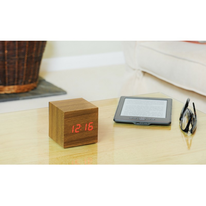The Gingko Cube Click Clock is a minimalist, sound-activated alarm clock that blends timeless wooden design with modern functionality. Compact yet striking, this LED digital cube clock features a sleek wood-effect finish and hidden LED display that only appears with a gentle touch, click, or clap – perfect for modern interiors that value simplicity and smart living.