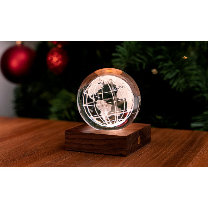 No matter which design you choose, the Amber crystal ball will reflect light in a way that creates an enchanting atmosphere. You can switch between three light intensity levels by touching the copper button on the front of solid natural walnut wood base.